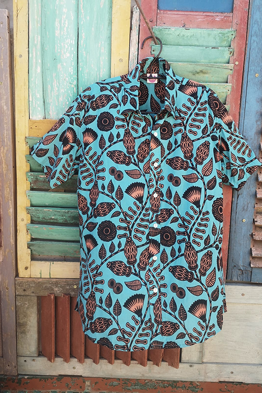 Nuestros estampados estan hechos manualmente con planchas de serigrafía. Cada color de un mismo estampado es una plancha diferente, una vez aplicado el color de una plancha el tejido se deja secar antes de poder aplicar el siguiente color. Al final del proceso de estampado la luz del sol fija y da intensidad al color.