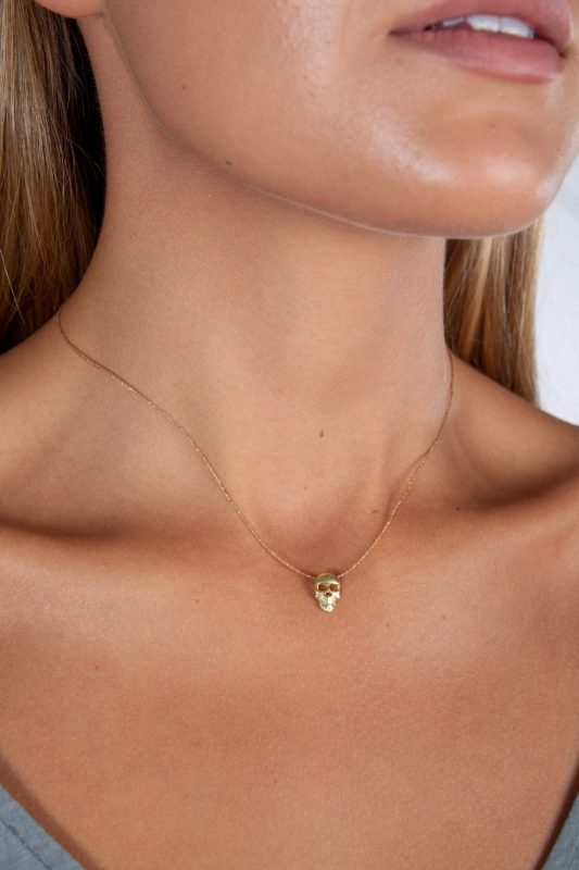 Gargantilla Issey calavera. Producto artesanal realizado en latón dorado con baño de oro.