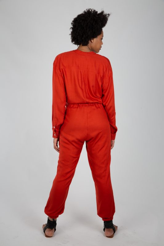Cordón en la cintura, elástico en el tobillo y botones de nacar.
