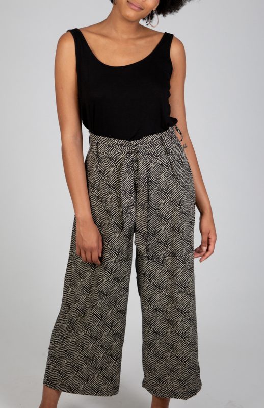 Muy cómodo por ser de pierna ancha, el pantalón Bione está confeccionado en tejido de peso medio/ligero que también hemos usado para el vestido camisero Eloise, mono Olawe y chaqueta Yarel entre otros.