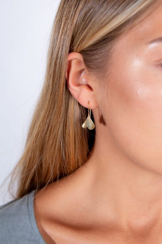 Pendiente Colección Issey guinko. Producto artesanal realizado en latón dorado.
