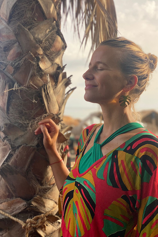 Los pendientes de hoja monstera, muy tropicales y divertidos, están hechos en latón dorado con textura. Es un material que suele ir bien para pieles sensibles porque no genera bacterias.