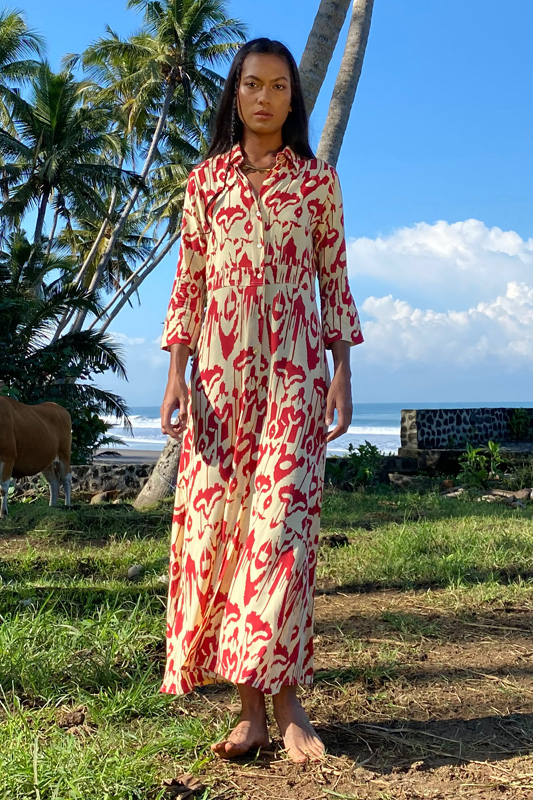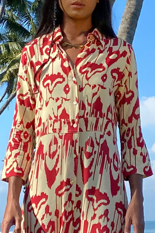 Vestido camisero confeccionado en rayón de origen vegetal a partir de pulpa de madera de pino.