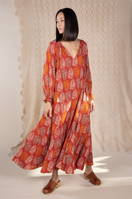 Vestido Melka Hojas Rojo