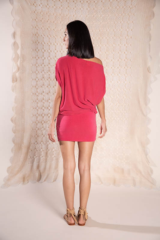 El mini vestido Nayem lleva un fruncido con elástico en los lados de la falda de tubo y en los hombros. Cinturilla reforzada con elástico.