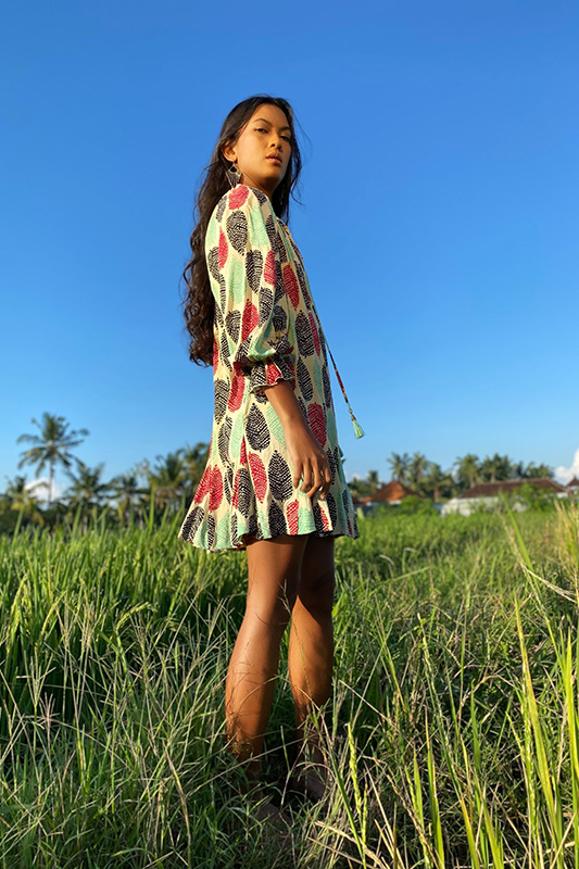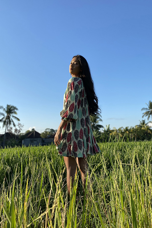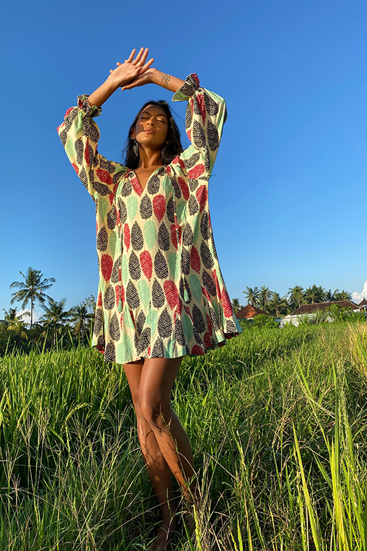 Nuestros estampados estan hechos manualmente con planchas de serigrafía. Cada color de un mismo estampado es una plancha diferente, una vez aplicado el color de una plancha el tejido se deja secar antes de poder aplicar el siguiente color. Al final del proceso de estampado la luz del sol fija y da intensidad al color.